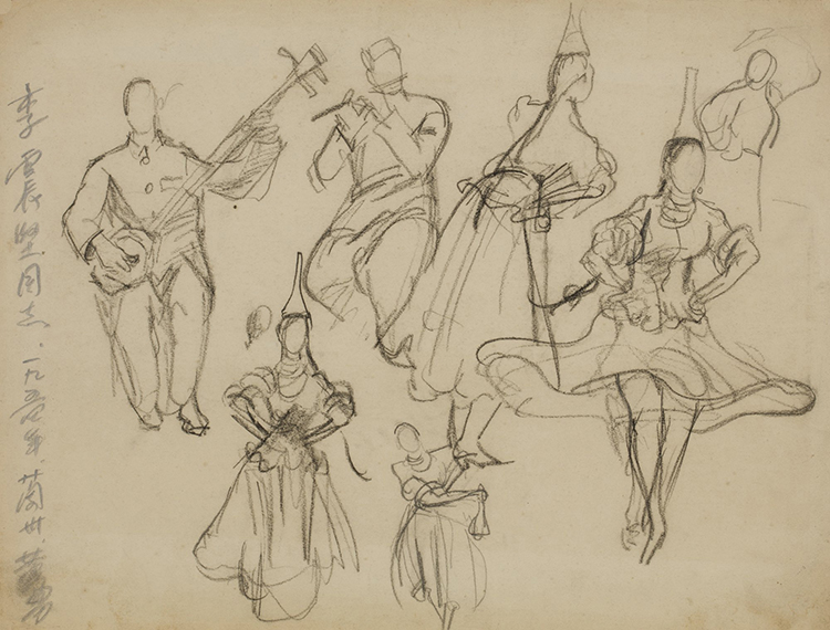 黃胄 歌舞人物 紙本 炭筆 29cm×38.5cm 1954年 浙江美術館藏