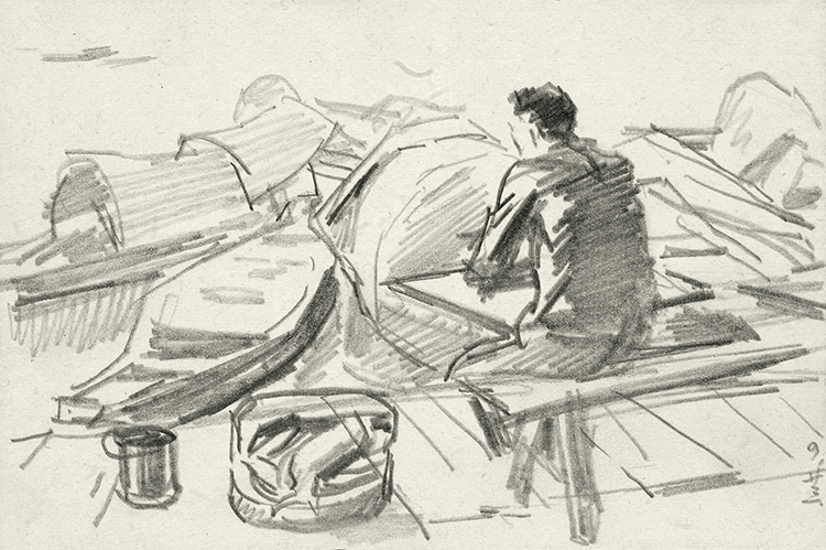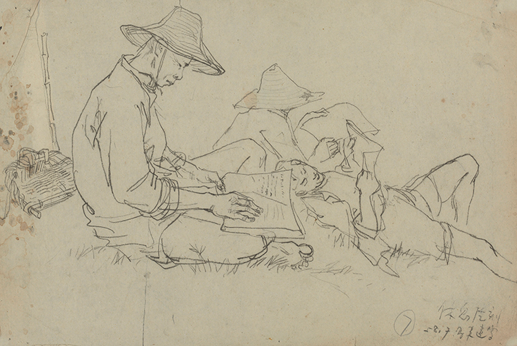 休息片刻 周滄米 27cm×39cm 紙本·鉛筆 1958 浙江美術館藏