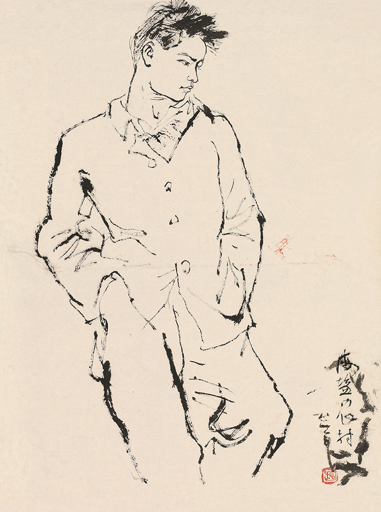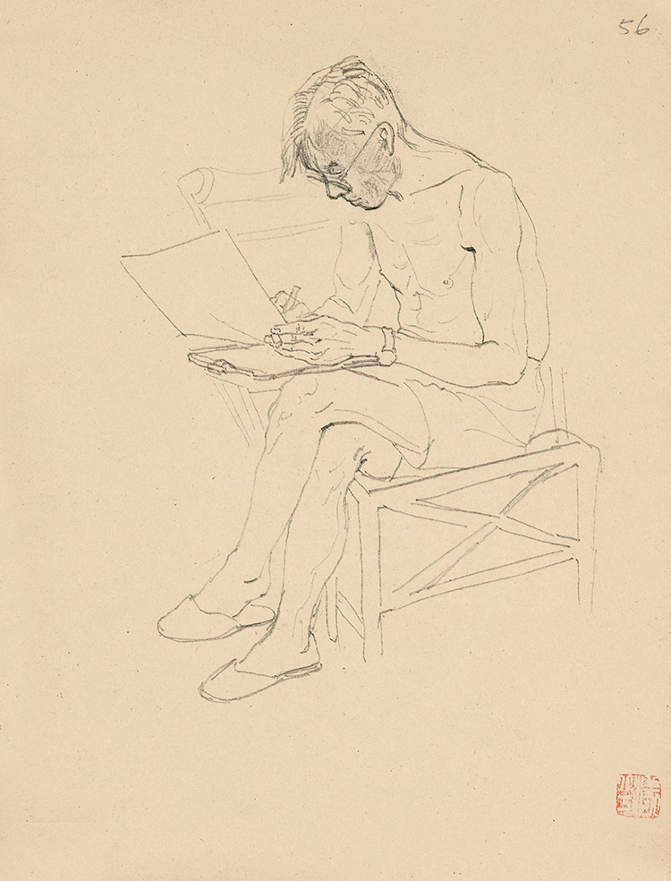張漾兮 讀書男子 紙本 鉛筆 30cm×21cm 1960年代 浙江美術館藏