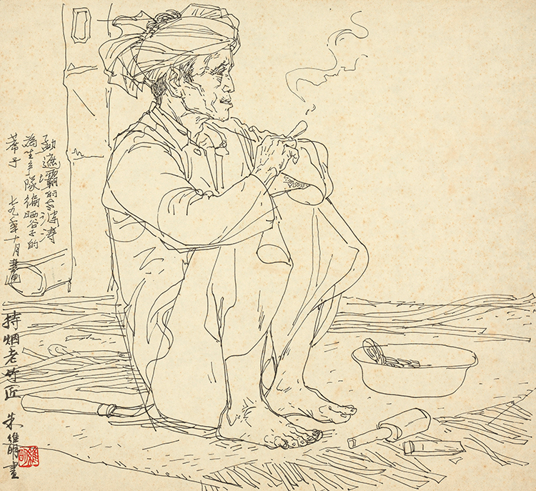 持煙老竹匠 朱維明 37cm×40cm 紙質·鋼筆 1979 浙江美術館藏