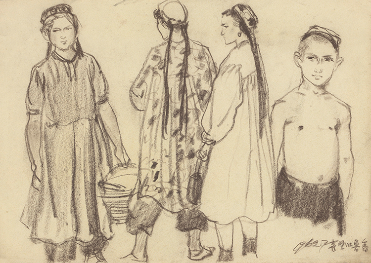 新疆寫生 李震堅 27cm×39cm 紙本·炭筆 1962 浙江美術館藏