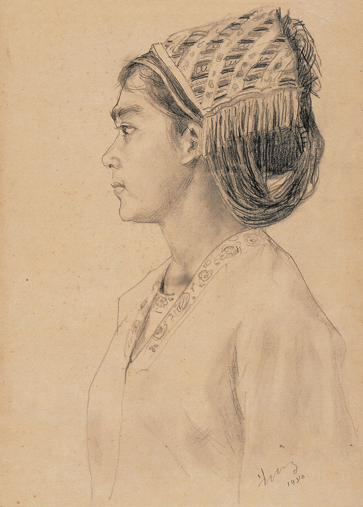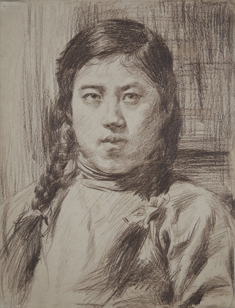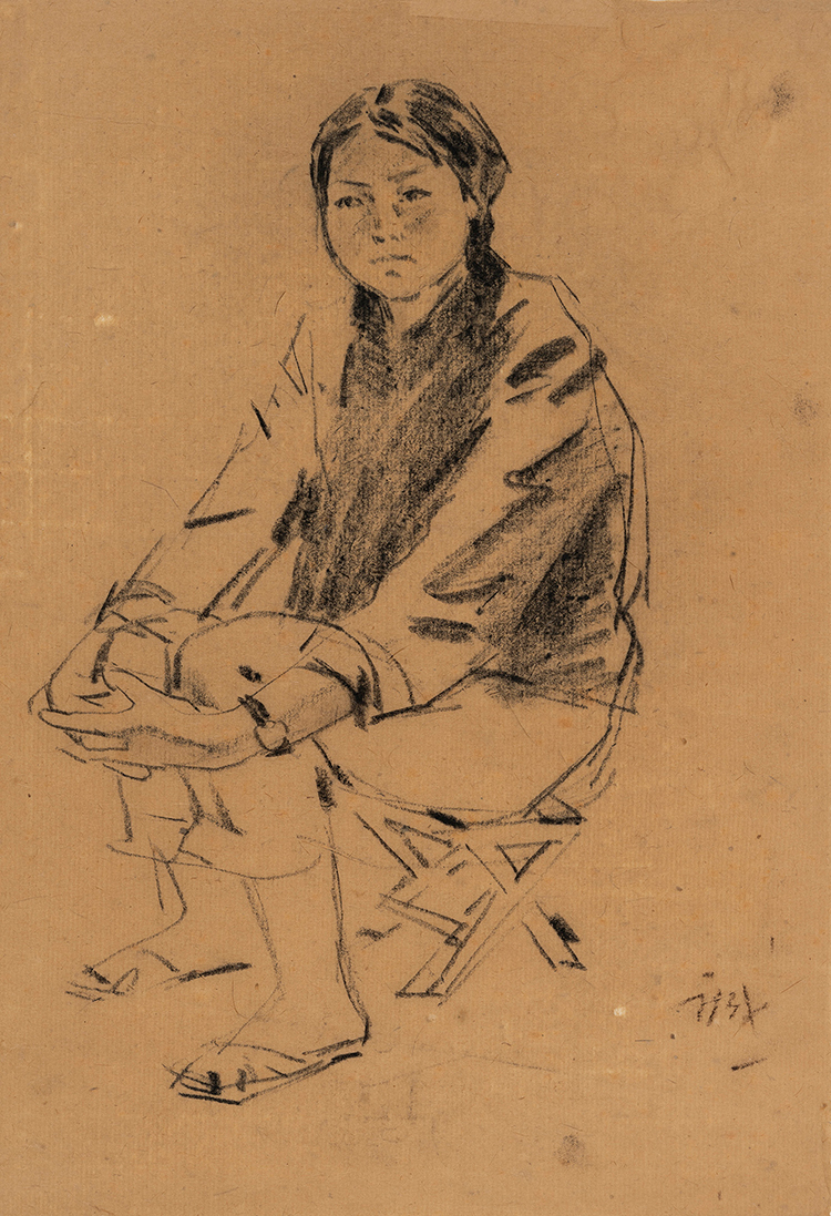 女青年像 董希文 紙本·炭筆 38.2×29.5cm 1950 浙江美術館藏
