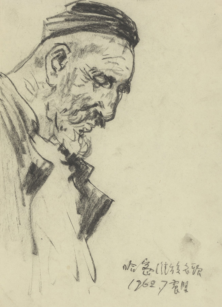 抽煙老人 楊可揚 19cm×13.5cm 紙本·炭筆 1963 浙江美術館藏