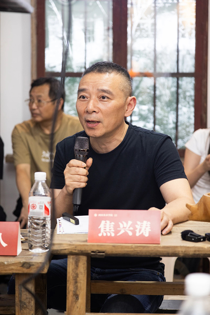 焦興濤以《中國式公共藝術的三個界面》為主題進行發言。首先,他指出公共藝術課程的命名與傳統理解的公共藝術不同,隨后他提出中國式公共藝術有三個層面:一是政府主導傳播主流意識形態價值觀,自上而下有組織,形成社會凝聚力;二是改革開放和全球化進程中出現的具有現代公共精神、強調平等對話交流和自主性的公共意識形態,能夠立足于新興中產階級社會;三是立足于底層民間個體、基于鄉約禮俗、強調自我表達的公共形態,存在于基層、民間和鄉土中國。從文藝形式看,春晚屬于自上而下的美育形式;脫口秀強調參與和自主;二人轉則是自下而上。演講的最后焦興濤認為底層創造力永遠值得被不斷的吸收,不論是當代藝術家還是民間藝術家都應保持創造性和個性。