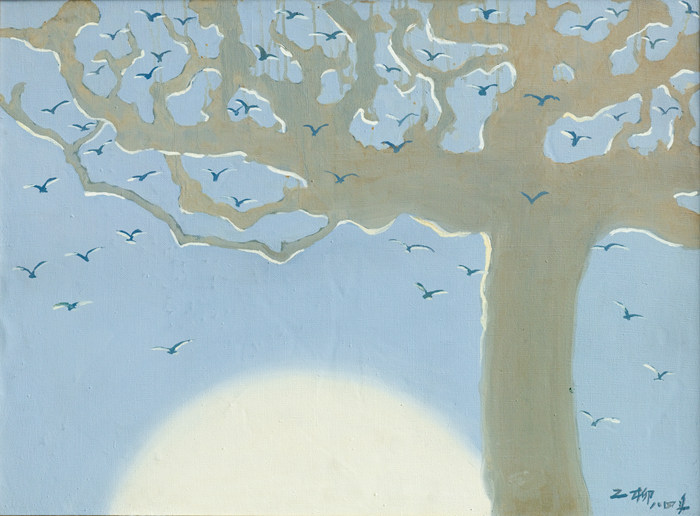 羅工柳 《明月驚飛鳥之一》 90×110cm 綜合材料(布面油畫) 1984