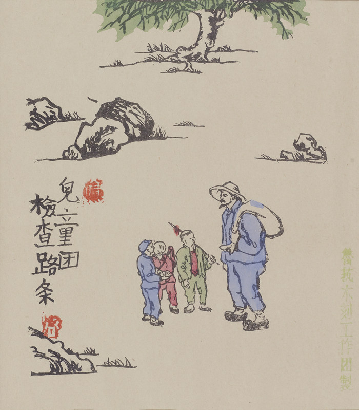 羅工柳 《兒童團檢查路條》 35x25cm 版畫 1940