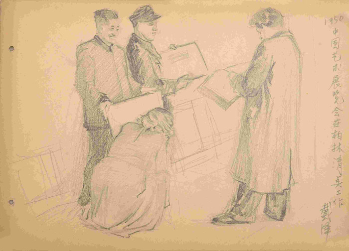 戴澤《中國藝術展覽會在柏林清點工作》20.5x28cm 紙本素描 1950