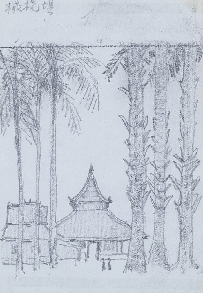 羅工柳 《云南風光-西雙版納橄欖壩》 17×12cm 速寫 1978