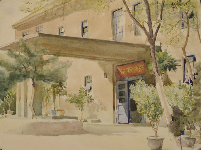 戴澤 《藝術圣殿的入口(中央美術學院U字樓 》 24.5x32.5cm 紙本水彩 1953