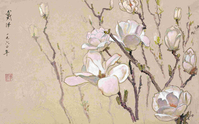 戴澤 《白玉蘭》 29x47cm 紙本彩墨 1960