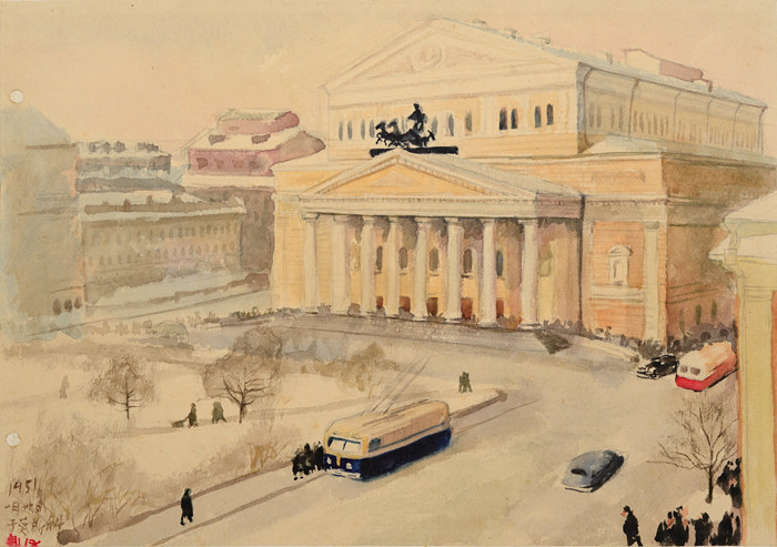 戴澤 《莫斯科大劇院》20×28cm 紙本水彩 1951