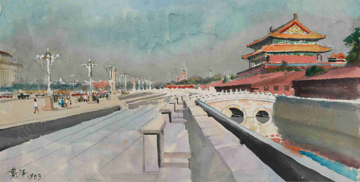 戴澤 《金水橋西眺》 22x43cm 紙本彩墨 1959