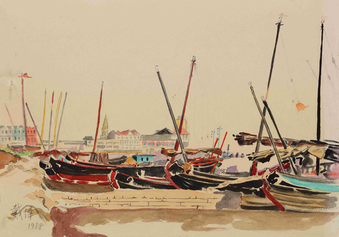 戴澤《寧波港》26x37cm 紙本水彩 1988