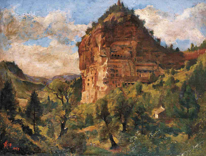 戴澤 《麥積山》 62x75cm 木板油畫 1953