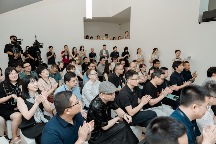 開幕現場,全國政協委員,北京畫院院長吳洪亮;中央美術學院科研處處長、博士生導師,中國美術家協會理事于洋;《美術》雜志社社長冀鵬程;閱文集團副總裁、黨委副書記、深圳美術館運營及學術總監王晨;中國藝術研究院美術研究所研究員、理論研究室主任、博士生導師華天雪;中國國家畫院理論研究所所長陳明;中央美術學院美術館直屬黨支部書記韓文超;武漢美術館館長陳勇勁;八大山人紀念館館長周曉??;浙江省美術家協會副秘書長李云雷;中國國家圖書館國圖創新總經理張立朝;中央美術學院學術委員會副秘書長湯宇;中央美術學院藝術管理與教育學院黨總支副書記康俐;中國美術館文創開發處副處長高揚;廣州美術學院省重點實驗室主任賈鵬;資深藝術顧問、策展人唐勝;江漢大學美術學院教授陳時;首都師范大學教授、博士生導師張鵬;西安美術學院美術史論系副主任李惠子;北京畫院美術館負責人薛良;戴澤藝術基金管委會主任,戴澤先生嫡孫戴夢;浙江省文聯副主席、寧波市文聯主席楊勁;寧波市鄞州區宣傳部副部長應林輝;鄞州區文聯主席毛建平;寧波美術館館長張繼萍;浙江紡織服裝學院教授、寧波市美術家協會副主席吳威;寧波市美協副主席、寧波市玖玖美術館館長王??;寧波市文化館副館長宋臻;海曙區文化和廣電旅游體育局黨組成員裘燕萍;青年學者楊燦偉、李垚辰、劉昊、陳都、莫曉雯、金寶敬、楊肖、叢濤、丁瀾翔、淺野泰之、宋金明、張濤。華茂集團創始人、華茂教育基金會創始人、華茂美堉獎發起人、東錢湖教育論壇創始人徐萬茂;華茂集團董事長、總裁,華茂藝術教育博物館館長徐立勛;華茂集團董事長助理、華茂藝術收藏負責人徐鈺程,來自全國各地的文藝界知名人士、藏家以及數十家媒體記者、藝術家齊聚東錢湖畔,共同研討中國現當代美術的發展歷程與羅工柳、戴澤兩位藝術前輩對中國現當代美術的重要影響。