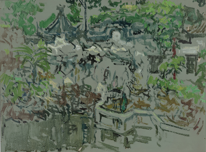 任微音 中華藝術宮(上海美術館)藏 豫園掠影 年代不詳 油畫 31×42cm