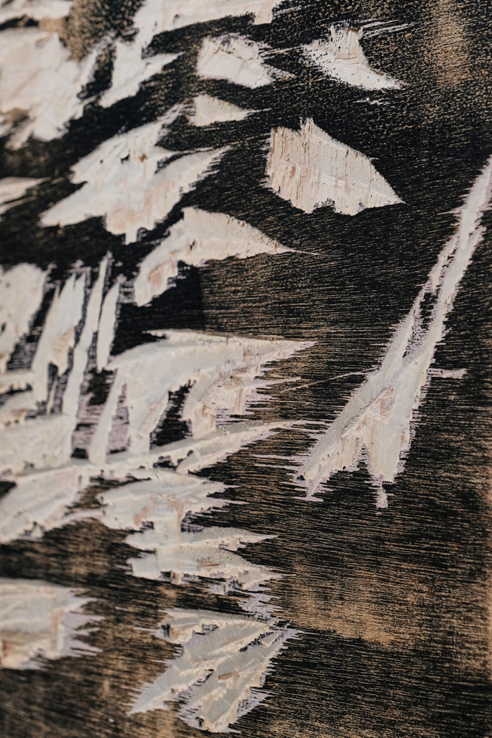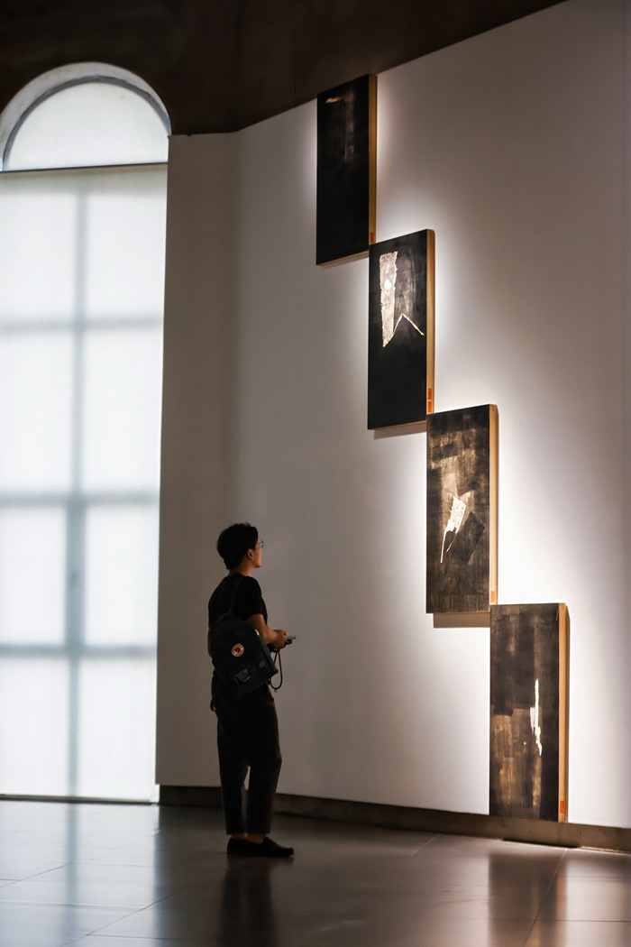 2024年7月27日上午,一個特殊的展覽在北京云上美術館油畫博物館開幕。不同以往,這次展覽的作品不是繪在亞麻布上的油畫,也不是印在紙上的版畫,而是版畫制作過程之中的原初材料——“五合板”。藝術家王綺彪將雕刻、涂墨之后呈現出豐富痕跡的木板作為藝術作品呈現在公眾面前,構成了“板象:王綺彪的18000天”展覽。