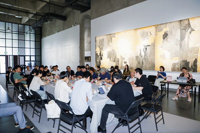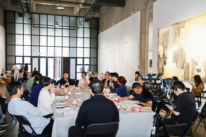 展覽開幕式之后,舉辦了學術探討會。中國藝術研究院油畫院名譽院長楊飛云,三寶國際陶藝村創始人李見深,廣州美術學院雕塑與公共藝術學院副教授、實驗雕塑工作室主任程辰,中央美術學院設計學院教授周博,北京畫院美術館負責人薛良,濟南美術館副館長張輝,中國社科院世界宗教研究所研究員趙廣明,法國東方語言文明大學東亞研究院研究員于碩,中國國家畫院副研究員王聰叢,中國藝術研究院美術研究所主任編輯孫欣,批評家、策展人、中國美術批評家年會學術委員鄭娜,寒山美術館館長胡仁仁,中國美協副研究員趙昆,山東大學歷史文化學院教授張新剛,藝術中國主編許柏成,北京云上美術館館長王鶴,本次展覽策展人紅梅,本次展覽藝術家王綺彪等參加了學術研討會。研討會上,策展人紅梅代讀了藝術家朝戈先生的文章。