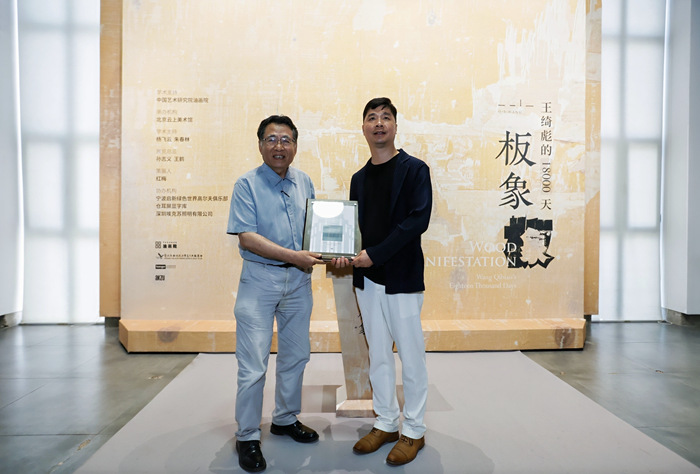 本次展覽是策展人紅梅研究王綺彪王綺彪3年近1000天的階段性學術呈現,集中對他2014年以來10年間的藝術整體面貌的梳理。她將王綺彪的藝術突破稱之為“板象”藝術,精選了王綺彪130件套作品,分為“刻·板”世界、“墨·板”世界、“板象”藝術三個部分,向學界展現王綺彪在語言、媒材乃至觀念突破方面的探索。