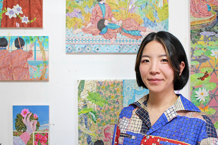 問:感謝您分享丸山直文教授和藝術家愛德華·維亞(Edouard Vuillard)對您以及您如何描繪圖案的不同質感的影響。能告訴我們您為什么喜歡這種藝術創作過程嗎?