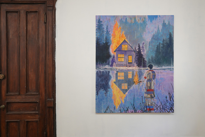 問:您作品中的嵌套式多層結構增加了一種客觀視角,讓人們可以將自己的自我與自己的經歷投射到畫作中。這也讓我想起了媒體理論中的“補救”概念,這個概念最初是由哲學家馬歇爾·麥克盧漢提出的,并由杰伊·大衛·博爾特和理查德·格魯辛在《再媒介化:理解新媒介》(1999)中創造出來。博爾特和格魯辛認為麥克盧漢的理論——任何媒介的“內容”總可以是另一種媒介(麥克盧漢,《理解媒介》, 107)——可以應用于數字時代新媒體的本質。