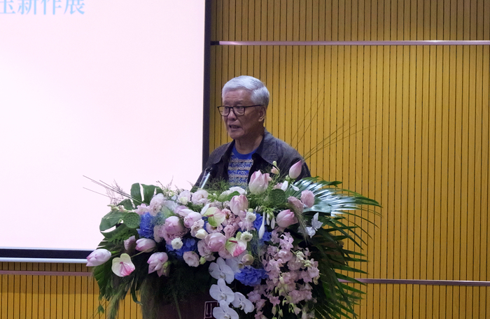 中國國家博物館原副館長陳履生從三個方面談到黃永玉的藝術成就,首先他說當下全國美展的13個展區正在展出,算起來黃永玉先生的藝術至少與其中10個展區有關聯,包括版畫、中國畫、油畫、雕塑以及漫畫、宣傳畫、壁畫、水粉、水彩、工藝美術、藝術設計等,顯示出他的全能與融會貫通。其次,他回憶起黃永玉九十歲在國博辦展時,曾對他說想畫國博大廳與天安門廣場,這兩個題材在透視與構圖的復雜性顯示出黃先生是一位永遠在挑戰自己的藝術家。第三,他指出黃先生在繪畫上的長文題跋在中國繪畫史上絕無僅有。