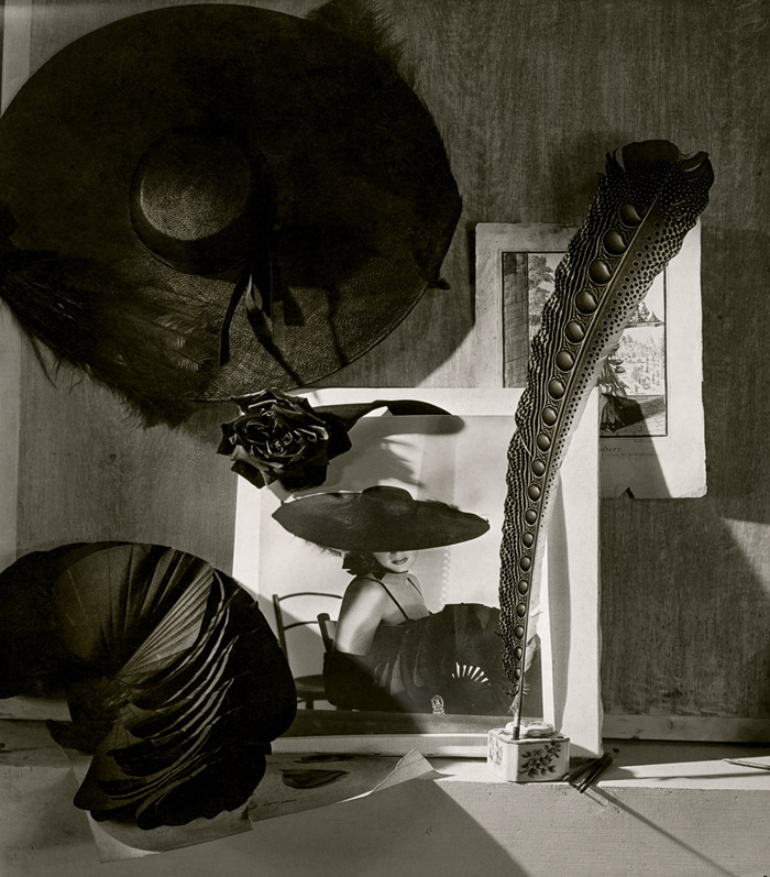 霍斯特總是能巧妙地利用光影的裝飾性:或是以鏡框切割空間完成構圖的創新,或是利用光影增加色塊結構的豐富度,又或是讓影子成為打破對角線或居中的樸素構圖的重要元素,對結構與內容、平面與空間、光與影進行靈活調配,很難不讓人認為是包豪斯的幾何學訓練帶給霍斯特的特有視覺語言。20世紀30年代末,霍斯特開始創作詼諧的超現實主義作品。最早期的作品就包括為英國版《Vogue》拍攝的帽子專題。他早前為社交名媛德蒙特斯鳩 ·費森薩克女侯爵拍攝的肖像照出現在這張作品中,周圍環繞著各種造型夸張的配飾。