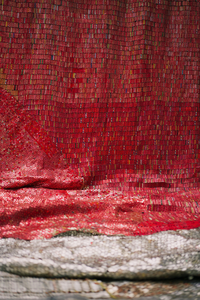 這是一件非常難得觀眾可以走進的作品:徜徉在這些自由流動的幕間,踏上一段移動與互動的旅程,每一次穿行都將開啟一種全新的視角。通過挖掘材料的詩意潛能,阿納祖深入探討了那些將人們緊密聯系在一起的復雜關系和地理紐帶。