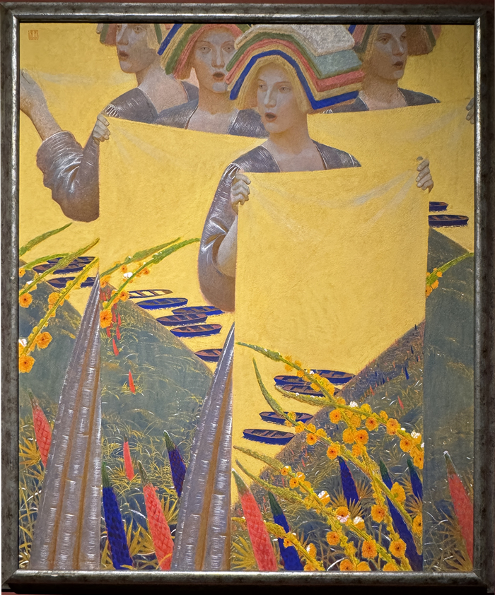 展覽最后部分呈現了俄羅斯國寶級藝術家祖拉布·康斯坦丁諾維奇·采列捷利的“我生來就是一名園丁”系列作品。祖拉布·采列捷利的藝術表現了現代人復雜紛繁的精神世界,深刻的哲思,形式語言強烈,形象詭譎,色彩濃烈,被譽為魔幻寫實主義。2023年,中國美術館舉辦過“生命的律動——祖拉布·采列捷利藝術展”,呈現了這位俄羅斯現代畫家獨特的風格。
