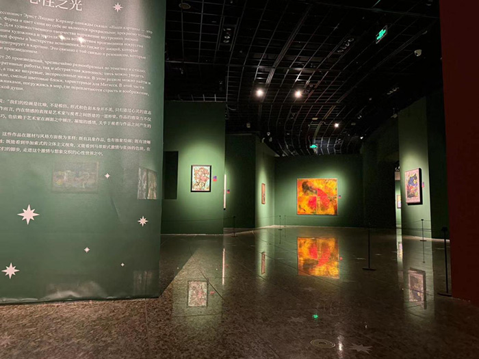 展覽集中展出了20世紀以來俄羅斯藝術科學院院士和通訊院士的繪畫作品共計100件,這些作品主要是以油畫和水彩為主,也有少部分為綜合材料繪畫。本次展覽沒有晦澀的知識介紹,而是按照藝術家們的出生年代和作品創作時間排序,觀眾可以直觀自然地欣賞俄羅斯繪畫藝術魅力。策展人楊杰說:“不能做成非常生澀的學術性的研究展覽,我希望它是一個帶有詩意視覺的審美欣賞的展覽。”同時在地面上的“星星”如“伏爾加河的繁星”勾勒出展廳的一條美妙的觀展動線,用電筒照耀下,“星星”還能放射出迷人的光芒。
