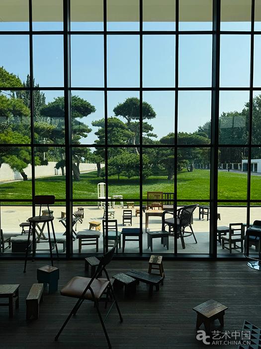 例如,“天地間”以整個美術館園區為畫布,在草坪上顯影時間的刻痕,有著對宇宙萬象、自然輪轉與人生變遷的思辨;“客廳”則擺布著各色椅子,營造了一種彼此交流互動的氛圍;“執空”以筆寫“空無”,通過舉重若輕的東方式哲思,探討存在與虛無的哲學命題;“沒有人是一座孤島”被鏡面不銹鋼覆蓋,在反射影像的變形和扭曲中,追問我們能否找回那些被忽視的價值。