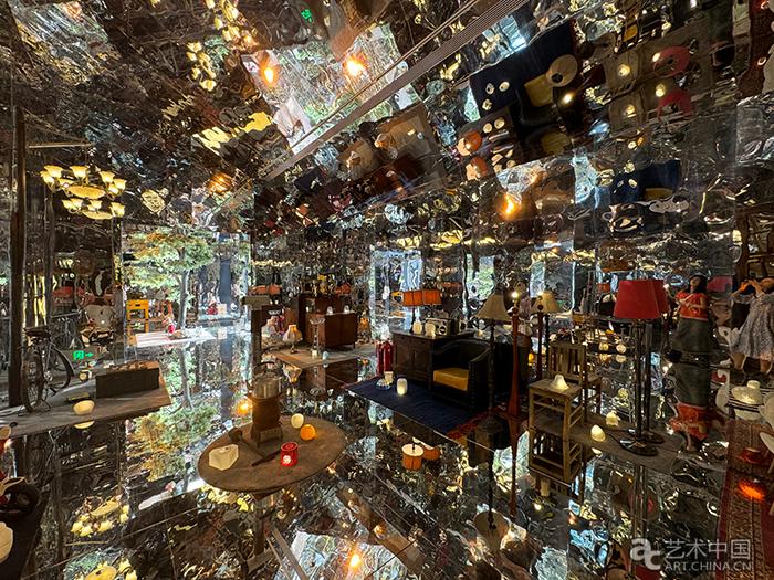 策展人崔燦燦將展覽中的“物”劃分了三種維度。第一個層次是“物向內的結構”。如“金屋”中的“金”,和其他如玻璃、木、鏡面等,散發出獨屬于自身獨一無二的特質。其次是“物向外的關系”。如“友誼”“糖果屋”中的物品,他們與人、時代和他者的關系,象征著一個時代的美學與道德、倫理與技術,意志與現實。最終,展覽聚焦到“物自己”。就像展廳前的一塊隕石,“天井”的一片天空,它們早已超脫于人而存在。這三重維度,也勾畫出展覽從個人走向時代,從現實走向想象,從主題走向意識與感知的弧光。