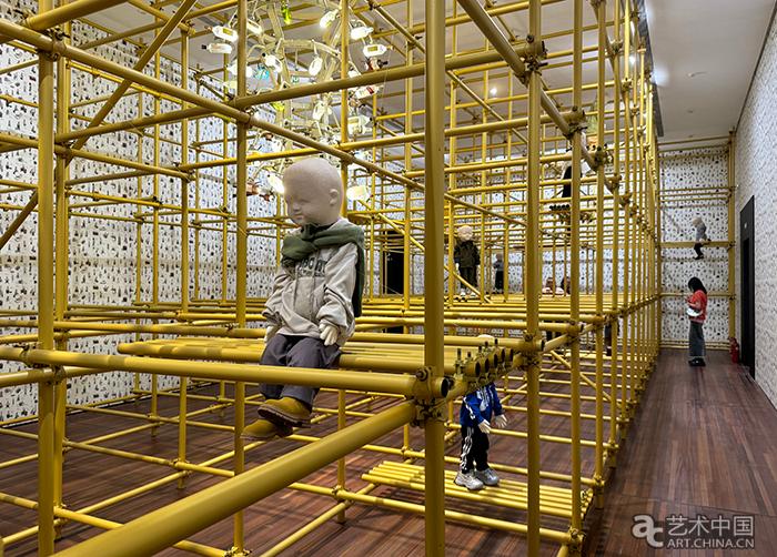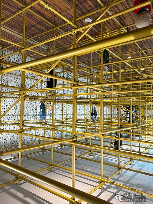 在“我不是我中”,腳手架填滿了整個空間,似是曾經“大基建時代”的剪影,與墻壁上宋冬的“成長史”相呼應,串聯起時代變遷和社會發展。