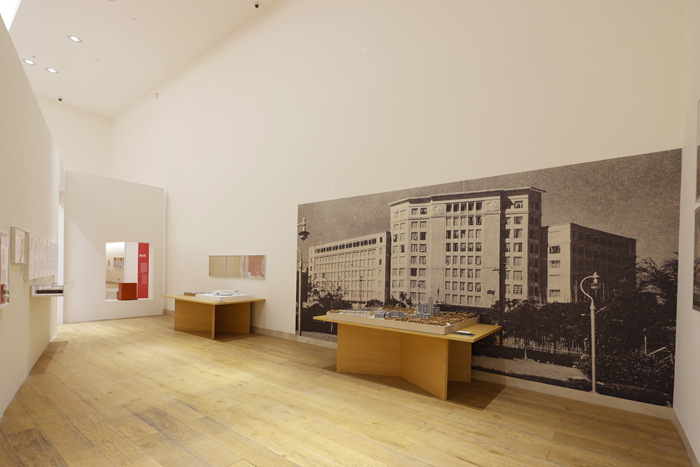 除了國家象征符號,新中國成立初期建造了一系列具有崇高感的建筑和場所,如開國大典的天安門城樓、人民英雄紀念碑和人民大會堂。展覽不僅展出了這些建筑的設計圖紙和手稿,還根據圖紙還原了人民大會堂的建筑模型。這些標志性建筑塑造了新中國莊嚴而富有力量的國家形象。新中國初期,多個展示現代化國家形象的展覽空間如廣交會與海珠廣場、萊比錫博覽會中國館等被精心規劃和設計。這些項目承擔了對現代主義設計語言進行跨文化轉譯的工作。