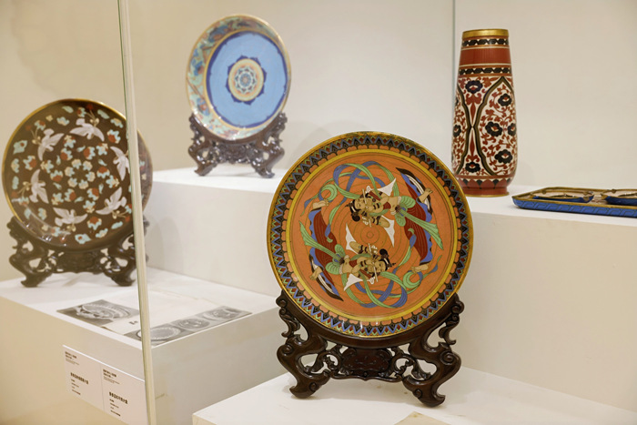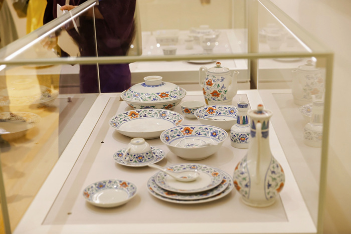 祝大年設計的新中國第一套國禮瓷器以及常沙娜等人設計的“新中國第一份國禮”景泰藍系列制品也在展覽現場展出。新中國成立后,北京政府召集了民間工匠參與研發,梁思成和林徽因推動成立了工藝美術組,國禮的設計推動了之前專門用于皇家陳設品的特種工藝向百姓日用的轉化。
