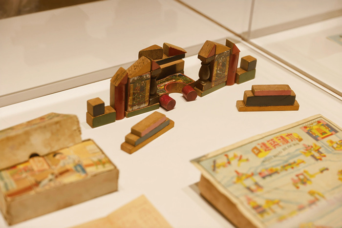 “設計美育的普及與提高”板塊還從“理想兒童”與美育啟蒙、全民掃盲和文藝出版這兩個獨特視角切入,展現出設計在教育的普及上發揮的重要作用。五十年代的“黑二體”“宋二體”等字體設計為推廣簡化字和漢字使用的規范化以及全民掃盲作出了巨大的貢獻,上海中藝玩具廠生產的建筑積木、康樂棋等益智類玩具的設計折射出當時社會對“理想兒童”的構想與期待,同時促進了藝術和科學知識的普及。