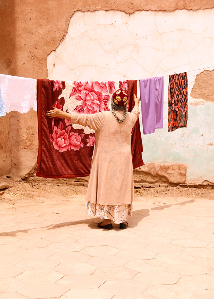 馬海倫紐約求學時,曾捕捉到故鄉新疆與紐約的布魯克林區在文化包容力上的相似性,于是將“烏魯木齊”與“布魯克林”相結合以此連接起自己最重要的兩段經歷。在本次展覽項目中,馬海倫邀請不同背景的新疆居民,在他們的院落里拍攝,捕捉城市生活的多姿多彩和個人故事。各個民族、不同年齡的參與者們因此相聚,展現了新疆城市社區中多元民族與文化的融合與共生。