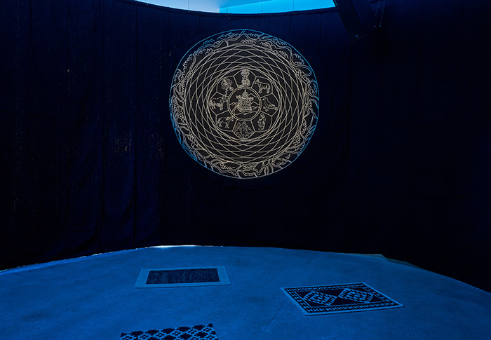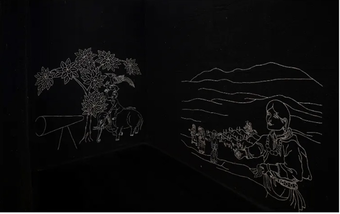 《動物悲歌》是“水系計劃”其中一個作品,在空行母的一份口述文本中,通過1000次轉世輪回,以動物的視角探索與人類的關系,講述人感知動物的一種智慧。當地居民對于水神的崇拜以及吉祥符號和數字在藏族文化中的應用,顯示出人類通過對自然的尊重和依賴構建出一種和諧的生活方式,強調了人與自然的緊密聯系及其共生共榮的重要性。