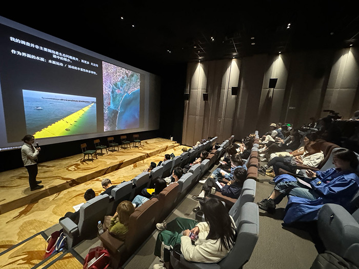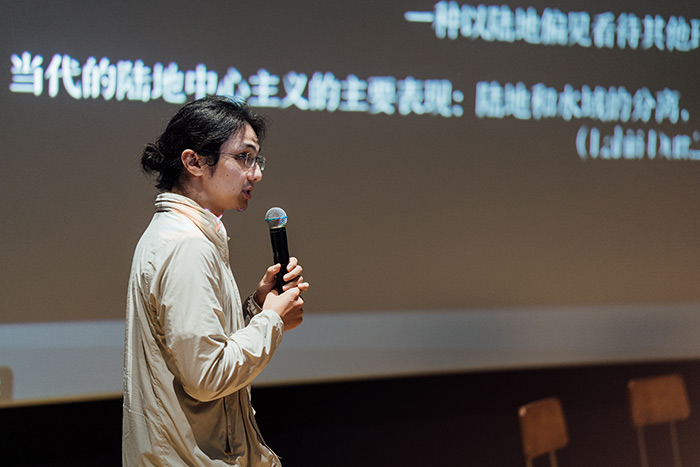 藝術家和研究者,奧地利林茨藝術與設計大學藝術研究博士奚雷在本次分享中介紹了近幾年他在兩棲性議題上的工作。他提出了陸地中心主義這一概念,用來描述一種以陸地標準來評價其他環境,特別是水環境的立場。通過對北京水利系統、佛山的桑園圍基圍系統、奧地利人工造雪以及威尼斯瀉湖等水陸交界的案例研究與實地考察,在跨文化語境中探討當代的水系關系。在這一過程中,他在多個層面上發展兩棲性,涵蓋了一系列的藝術方法,這些方法不僅源自于當前媒介的研究、人類學和哲學的討論,也來自他在實踐考察中獲得的地方知識。作為項目的一部分,他還創作了一系列藝術作品,包含影像、動畫、聲音、文本裝置、繪畫、繪圖等多種媒介。
