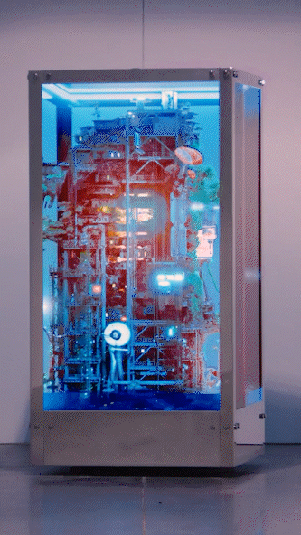 《S.2122》是Beeple對于2122年人類未來圖景的設想,在一個逾兩米高的旋轉矩形雕塑內,一座獨立的多單元高層建筑矗立于未來主義的海洋環境中?!禨.2122》亦是藝術家首次將過往重要作品聚合于同一件實體雕塑中呈現,囊括了《每一天》系列的經典元素以及《人類一號》中的宇航員形象。這件作品同樣具備可生長的特性,作品里的內容會持續更新——海洋水位會不斷上升,建筑中的人類也會隨之展開應對。通過這件作品,Beeple表達了對于未來以及技術在塑造世界中的作用的持續迷戀,不僅展現了氣候問題的嚴重性,也展現了人類生存的堅強意志和力量。