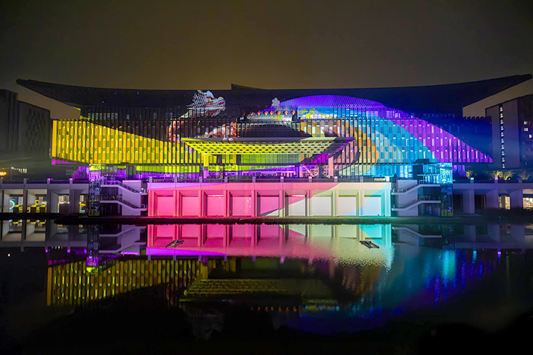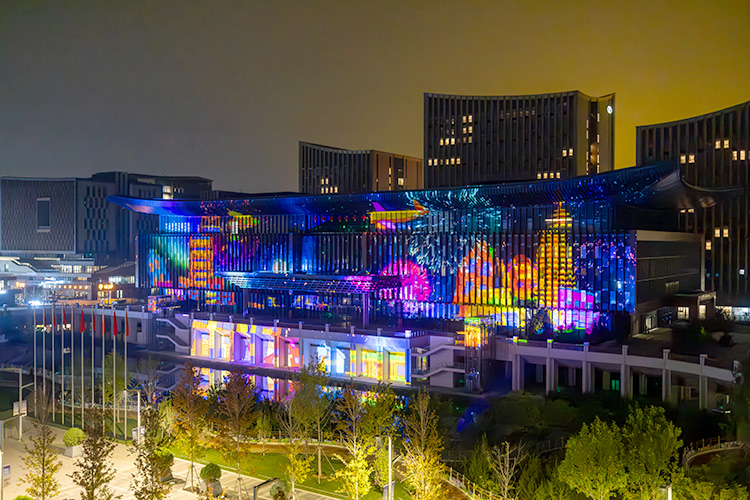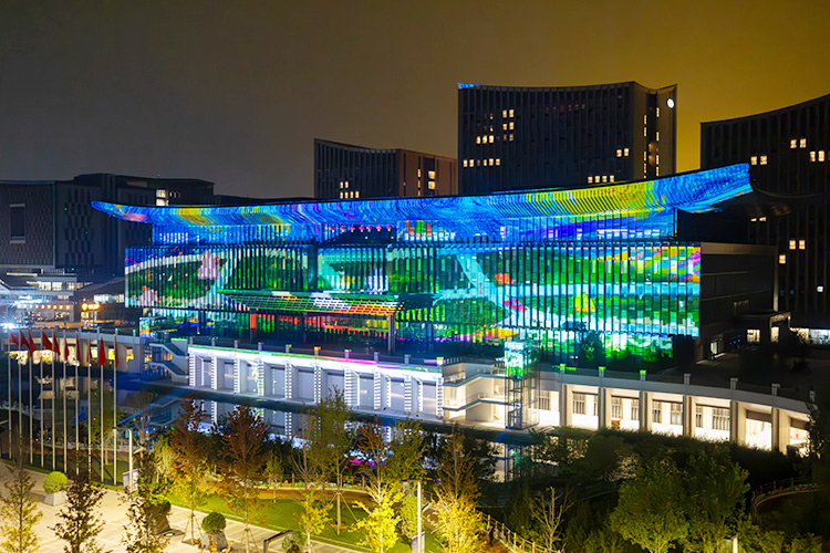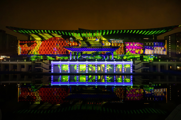 “雄安商務服務中心”是雄安新區城市會客廳,外部造型傳承漢唐經典,氣質雄渾穩重,展現出“中西合璧、以中為主、古今交融"的建筑風貌;內部空間融匯地域非遺文化,集萃現代東方美學,打造極致藝術殿堂。此次大型光影項目的落成,將極大提升雄安新區的文化內涵與藝術價值,形成夜經濟亮點IP,打造一張亮麗的雄安城市名片,賦能雄安文商旅融合發展。