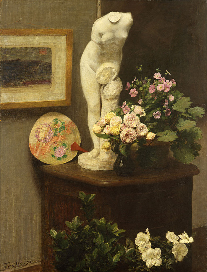 亨利·方丹·拉圖爾,《靜物、軀干與花卉》,1874,布面油畫,116 x 90厘米,瑞典哥德堡藝術博物館