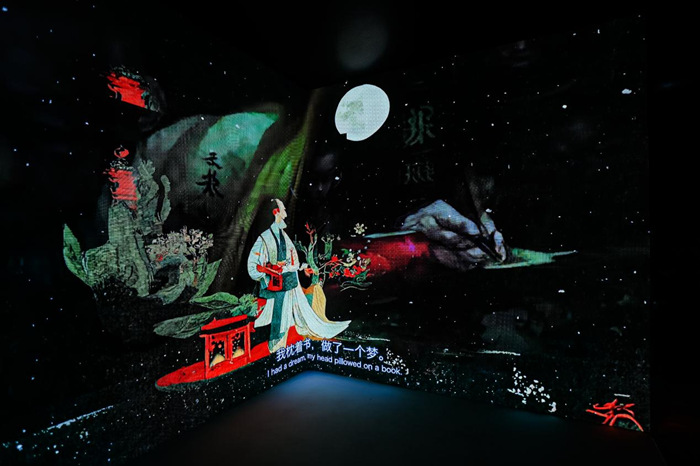 第三部分展示了6位藝術家(小組)對數字媒介的各自探索。高郁韜與Siri對讀《春江花月夜》,以掃描儀在“洞穴”中放大了對微觀世界的想象,緩解他在異鄉的寂寥;黃河山構建了一個虛擬城市項目,將城市變為肆意的消費景觀;宋婷以AI重新演繹《悉達多》和《牡丹幻夢》,展現數字世界中的浪漫詩意。