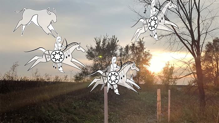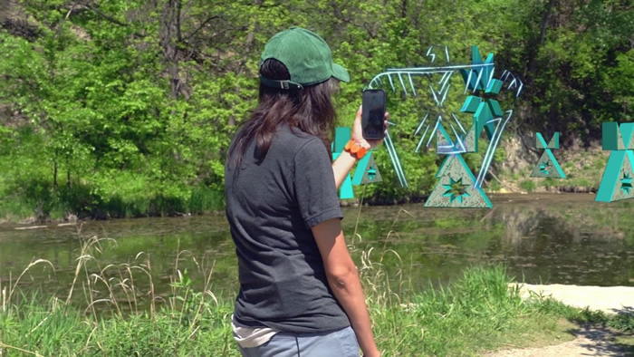 北美地區獲獎案例是瑪琳娜·梅爾斯和托德·博斯(Marlena Myles & Todd Boss)的《達科他精神漫步》(Dakota Spirit Walk)。同濟大學建筑與城市規劃學院教授、國際雙年展協會的創始主席,評委李龍雨認為,《達科他精神漫步》以增強現實的藝術方式展現美國明尼蘇達州達科他地區的歷史和文化。該作品在每個與歷史文化對應的地點上設置增強現實裝置,引導人們了解土地對美國印第安社區的意義、土著歷史以及土地生命力的精神及其政治意義。作品極富詩意,講述了美國原住民、斯皮里特萊克達科他部落公民和藝術家自己的故事,通過引人入勝的故事和生動的動畫述說歷史。作品中應用的增強現實技術是與明尼阿波利斯的像素農場和創建Revelo AR應用程序的紀錄片制片人托德·博斯合作完成?,F在許多人都不了解過去達科他人的故事,通過藝術家的創造,這些故事再次被展現出來。正如藝術家所說:“我們需要用新的眼光來看待蘊藏在這里的更深層次的力量?!?/p>