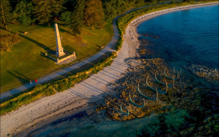 大洋洲地區獲獎案例是愛麗絲·佩姬(Alison Page)和尼克·拉恰伊扎克的 《海陸之眼》(The Eyes of the Land and the Sea)。據墨爾本藝術博覽會藝術總監及策展人、塔拉瓦拉雙年展首席策展人,評委艾米麗·科馬克介紹,《海陸之眼》是為紀念 1770 年澳大利亞土著居民與詹姆斯·庫克的 HMB 奮進號船員在澳大利亞卡邁植物灣國家公園相遇 250 周年而創作的,坐落于殖民時期紀念庫克登陸方尖碑的正前方。以高度敏感性和智慧對澳大利亞后殖民時期身份認同背后的矛盾沖突進行了回應。藝術家們所創造的跨越過去和現在的對話,對不同的觀點持開放態度,尊重格威蓋爾原住民持久的所有權和生生不息的文化,同時紀念了為澳大利亞做出貢獻的個人故事。藝術家收集了1770年在柯美灣發生的遭遇,并將這些故事刻蝕在每根肋骨上。這座雕塑深深扎根于悉尼柯美灣多層次的地域之中,通過與社區的合作得,展示了一段艱難的歷史,展望著共同的未來。
