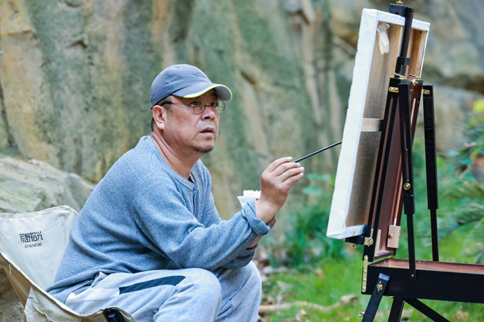 吉林藝術學院教授、吉林省油畫學會理事、70油畫公社社員孫昌武在白鹿洞書院寫生