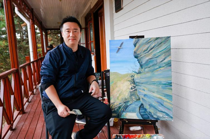 濰坊市油畫學會副主席、70油畫公社社員辛建偉在白鹿洞書院寫生