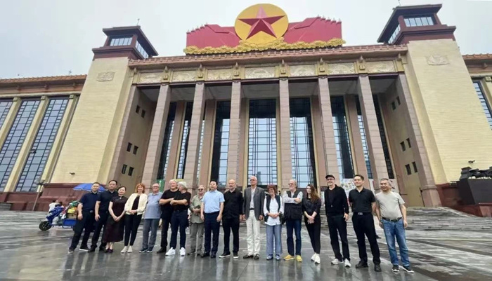 2024年6月10日,江西省文化和旅游廳黨組成員、副廳長陳曉平與德國藝術家考察團等在江西省美術館前合影
