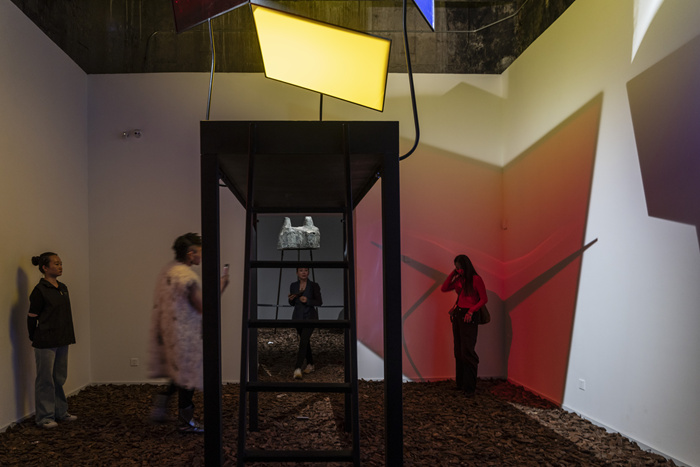 瑪麗娜說,這是一場“回歸故土”的展覽?!熬嚯x烏雷和我走過2500公里、最終在中國長城中段上相遇已經過去36年了,我非常期待在上海舉辦此次展覽”——這場展覽的作品靈感來自1988年那場舉世矚目的行走長城的行為藝術。當然,當時瑪麗娜并沒有意識那些山川草木會成為晚年作品的歸宿。值得一提的是展廳的四樓是藝術家為藝倉美術館特別訂制的場域作品,要求觀眾寄存手機和包、穿鞋套進入,然后在志愿者的引導下,與這些作品發生互動。