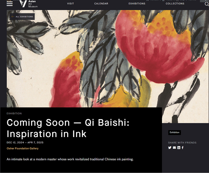 舊金山亞洲藝術館官網“不肯作神仙——齊白石的水墨靈韻”展覽預告